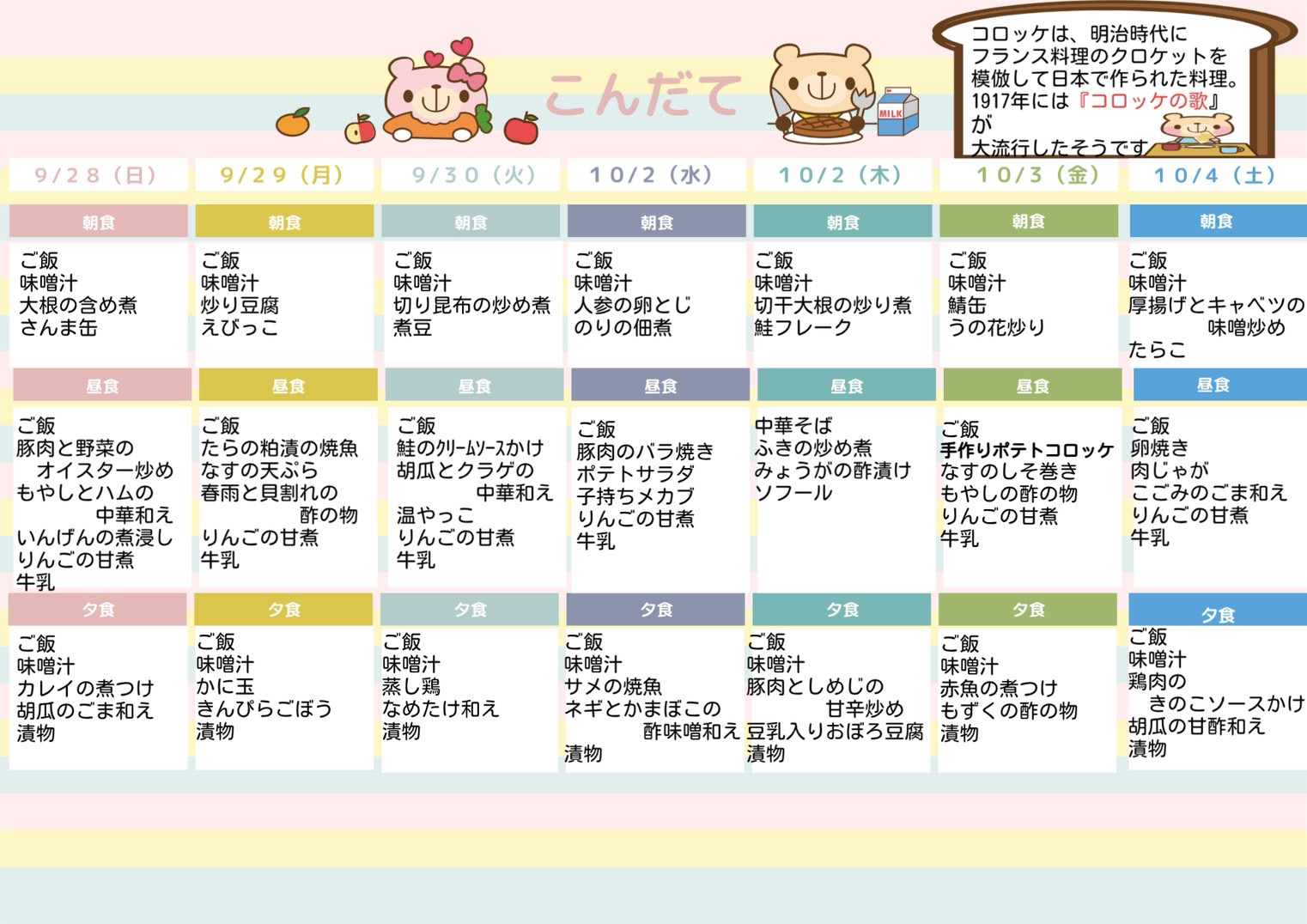 🍚今週の献立(令和7年9月28日~10月4日)🍚