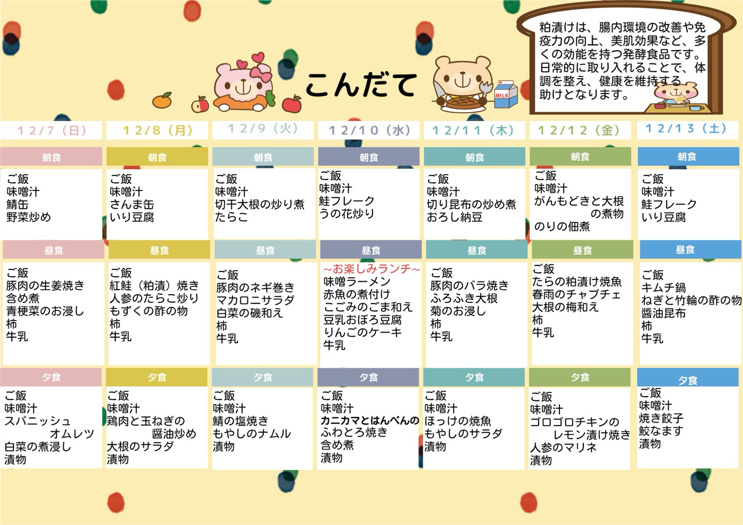 お知らせ TOP > お知らせ > 🍴今週の献立(令和7年12月7日~12月13日)🍴 🍴今週の献立(令和7年12月7日~12月13日)🍴 お問い合わせ TEL 0172-44-7588 入所やご利用について 気軽にお問い合わせください。