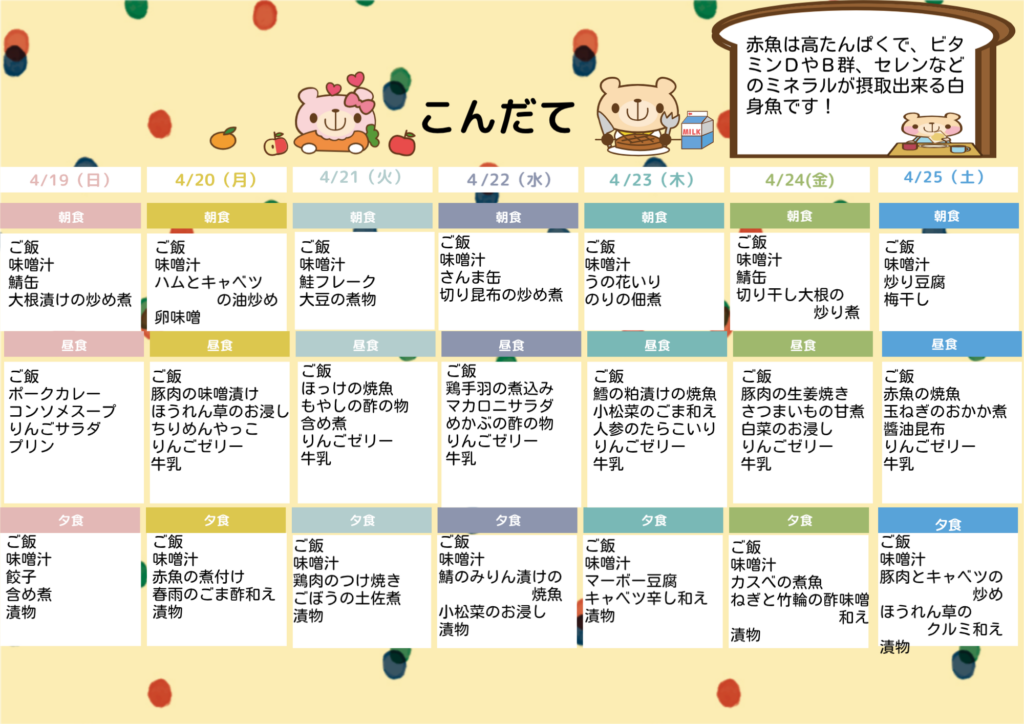 🍴今週の献立(令和8年4月19日~4月25日)🍴